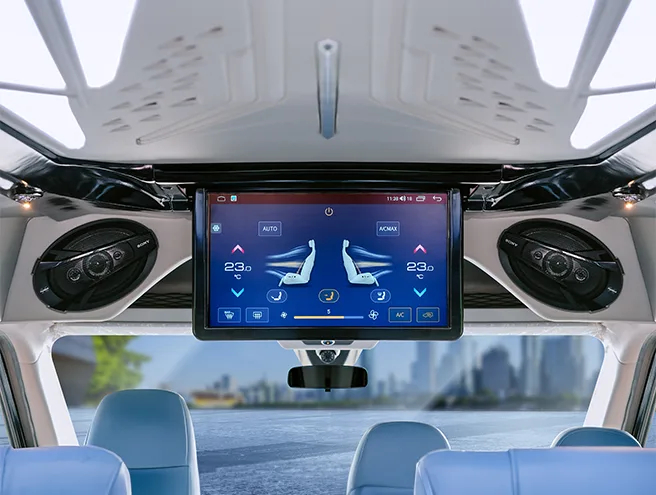 Hệ thống giải trí ngập tràn với màn hình tivi kích thước lớn kết hợp với 6 loa giải trí.